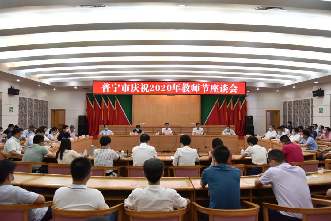 市领导符贤、黄锐亮、陈华娜、杨镇松、黄光胜,市委办、市政府办、市委编办、市财政局、市人社局负责同志,各乡镇场街道、普侨区党(工)委书记,市教育局班子成员,各教育组组长,市教育局直属学校校(园)长,2020年荣获潮汕星河辉勇师表奖教师、2020年普宁市“最美教师”等教师代表参加了座谈会。