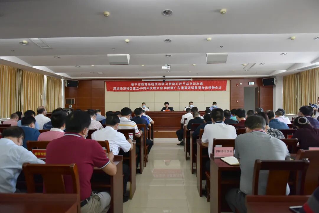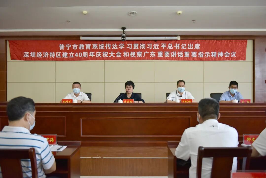 今天上午,我局召开教育系统传达学习贯彻习近平总书记出席深圳经济特区建立40周年庆祝大会和视察广东重要讲话重要指示精神会议,并提出贯彻落实的具体措施。局班子成员、各股室站负责人;各教育组组长,市局直属各学校校(园)长参加了会议。