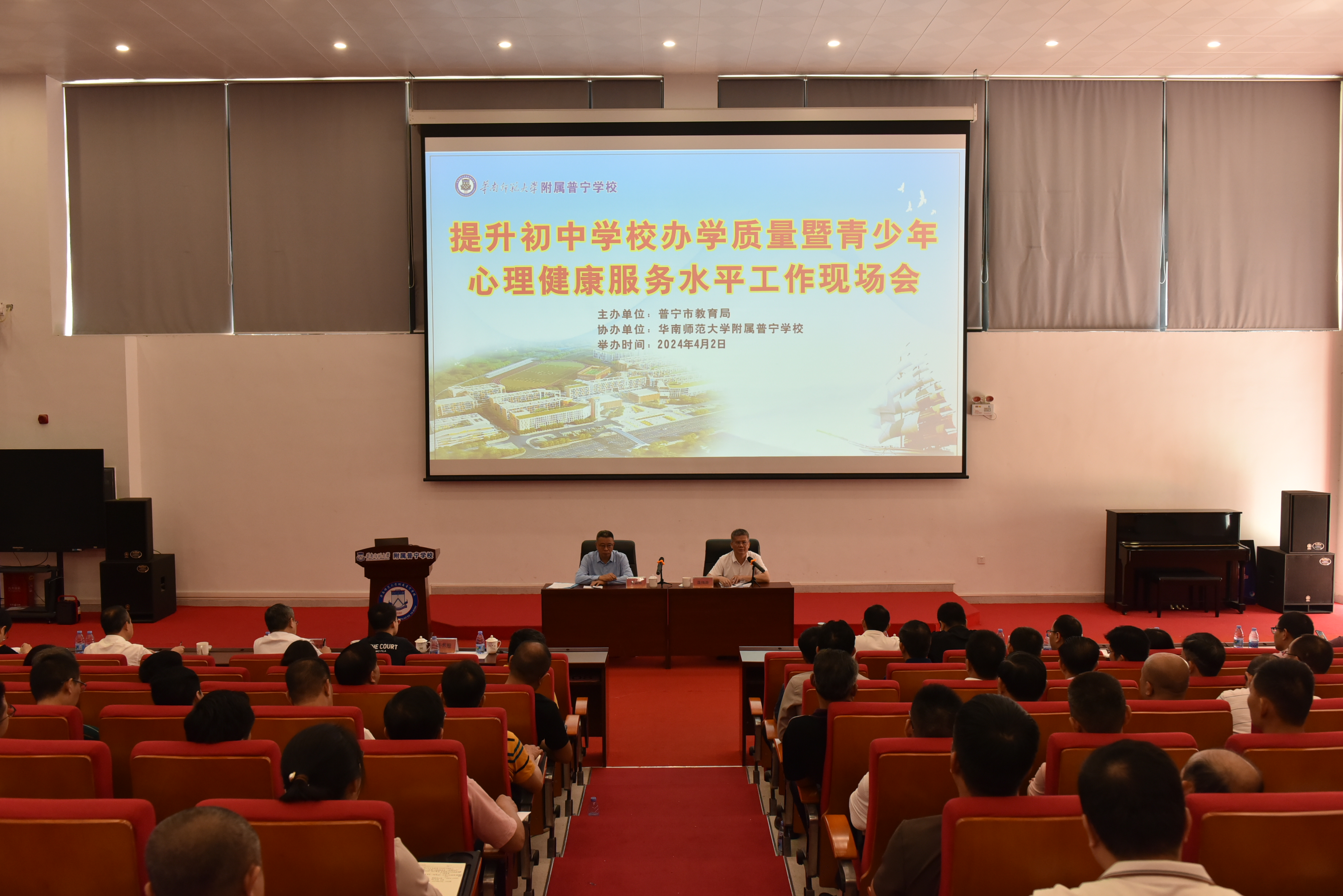 会前,与会人员现场观看华南师范大学附属普宁学校校园文化建设、校容校貌及办学情况。华南师范大学附属普宁学校、洪阳镇鸣岗初级中学、后溪中学、流沙西街道赤水学校等校长分别进行交流汇报。黄锦彬部署我市提升初中办学质量和心理健康教育水平的具体要求。