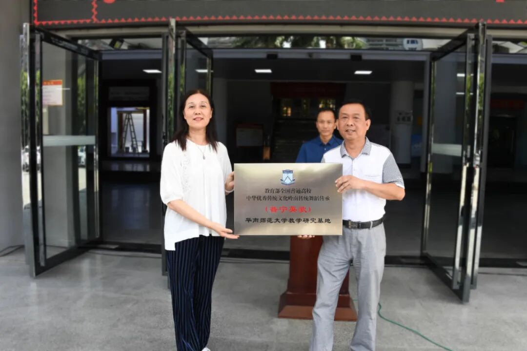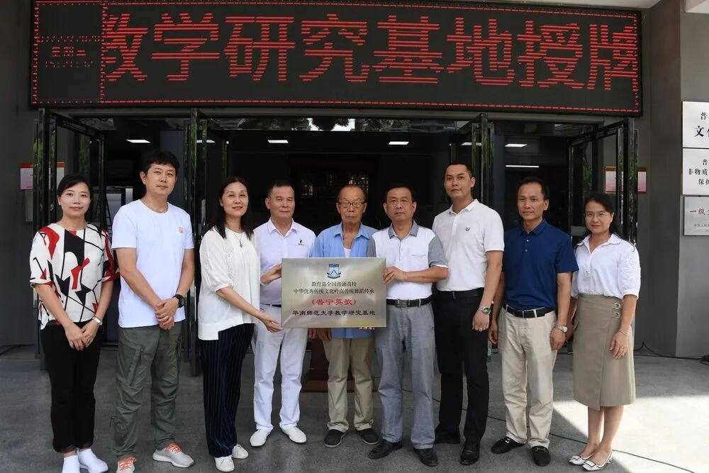 近日,中华传统文化岭南传统舞蹈传承(普宁英歌)华南师范大学教学研究基地授牌仪式在市文化馆举行。华南师范大学音乐学院副院长、博士生导师王海英教授,华南师范大学音乐学院舞蹈系主任、硕士生导师王艺波副教授,华南师范大学音乐学院舞蹈系硕士生导师刘妍副教授,揭阳市群众艺术馆副馆长张伟松,普宁市文联副主席、普宁市文化馆馆长、普宁市非物质文化遗产保护中心主任陈华南,普宁市文化馆有关负责人,普宁英歌国家级传承人陈来发,省级传承人张伯琪以及华南师范大学舞蹈系学生们出席了授牌仪式。 授牌仪式上,陈华南馆长致欢迎词,他表示,普宁英歌是传统文化的瑰宝,具有较高的艺术价值和研究价值,要传承、要发展、更要创新,中华传统文化岭南传统舞蹈传承(普宁英歌)华南师范大学教学研究基地设立后,有了这些新生力量的加入,相信普宁英歌将会有创新性的发展。王海英副院长代表华南师范大学音乐学院,向多年来对他们教学、研究给予长期支持、关心和帮助的相关单位,以及传承人表示衷心的感谢,对基地的成立表示热烈的祝贺。 华南师范大学是华南地区教师教育的高地,拥有实力雄厚、学科全面的优质教育资源。舞蹈学科建设始终立足于新师范教育,秉承“以舞育人,传承岭南”的理念,积极发挥高校文化教育传播的引领性与典范性,践行高校服务社会以及文化传承与创新的功能。 王海英副院长向陈华南馆长授予中华传统文化岭南传统舞蹈传承(普宁英歌)华南师范大学教学研究基地牌匾。