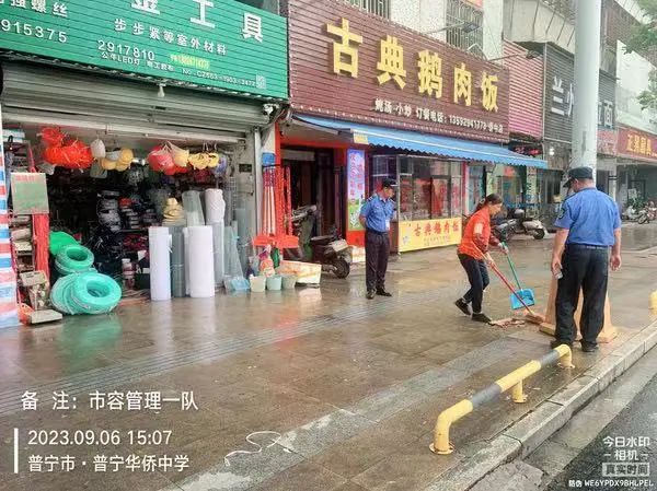 做好开学季市区中小学校校园周边环境综合整治工作,加强巡查,对乱摆乱卖、乱拉乱挂、乱停乱放等违法行为进行取缔整治,加强宣传,引导周边商铺入室规范经营、严格落实门前三包责任并自觉做好门前卫生清扫等工作。 强降雨期间,组织抢险队伍上路巡查,对市区主次干道发现积水的路面及时采取措施进行排水,尽快消除积水隐患,并加强对易涝易积水点及路灯用电设施安全的排查。 在市区各路段开展环境综合整治行动,对存在占道经营、乱摆设广告牌、门前卫生脏乱、乱堆乱放、乱搭遮阳伞、私设路障等违规行为的商铺、摊贩,现场督促其落实整改,并加强“门前三包”宣传。 巡查发现市区主要道路存在车辆违停乱停现象,现场对其进行取缔整治,对违停车主进行教育并发放违停温馨提示书。 督查市区各餐饮店餐厨垃圾处置、油污排放等情况,对不符合有关规范、要求的,现场发放整改通知书,要求其限期落实整改。 巡查发现有商铺门前乱堆放装修建筑垃圾,落实店主及时对废弃物和垃圾进行清理清运,并做好门前卫生清扫工作。 联合东街道执法队对新六路开展城乡环境大整治专项行动。 排查康美福临门路段排水管道,对发现的化粪池和污水井堵塞等问题及时通知并责令福临门物业进行处置,确保排水通畅。 加强对户外广告和招牌设施的巡查排查,落实户外广告牌业主和责任人做好户外广告设施安全加固、防漏电安全检查等工作。 开展市区市政道路绿化树木安全排查工作,发现树木折枝、枯枝、断枝挡路及时对其进行清理清运。 ★ 整治小结 ★ 本周共开展日常巡查37次,出动人员198人次,整治占道经营157宗,清理流动摊贩101宗,清理乱摆设广告牌、横幅、牛皮癣24宗,拆除路障8宗、乱搭遮阳篷及遮阳伞21宗,落实商户做好门前卫生保洁50宗,劝导教育违停车辆43宗,清理乱堆放杂物垃圾21宗,清理污染路面10宗,落实餐饮店餐厨四水排放整改3宗,清理油渣残渣6宗。修复路中隔离栏36米、防撞柱7支、机非隔离栏15米、阻挡杆1支、反光立柱2支、沥青路面8平方,疏通雨水管道40米、雨水井盖4套。路灯线路隐患排除6处;墙灯维修5盏,维修道路路灯423盏,维修栏杆灯50杆,庭院灯更换灯泡28粒,校正加固路灯1杆。修剪、清理倾斜大树和树木枯枝断枝8处,预先疏枝、修剪、加固树木30株,园林设施维护8处,公园清理管道去积水出动人员16人次、绿化修剪养护道路3条,绿化修剪养护公园广场1个,修剪养护绿化面积合计2万平方米。
