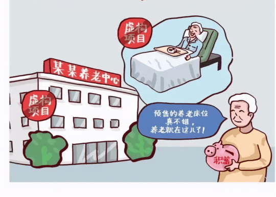 骗子以投资养老保险项目、投资开办养老院、购买养老公寓、入股养生基地、高额分红为名,诱骗中老年人参与,进行非法集资。