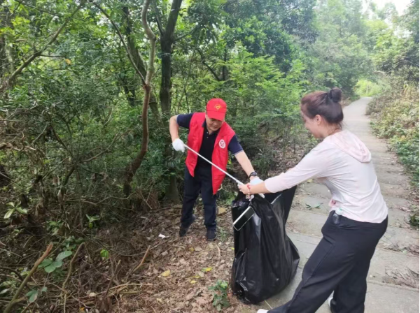 志愿者们一边清理,一边主动向登山晨练的村民和游客宣传爱绿护绿生态保护知识,呼吁大家从自身做起,不乱扔垃圾、不破坏植被,自觉成为环境保护的参与者和倡导者,共同守护普宁的美丽生态。