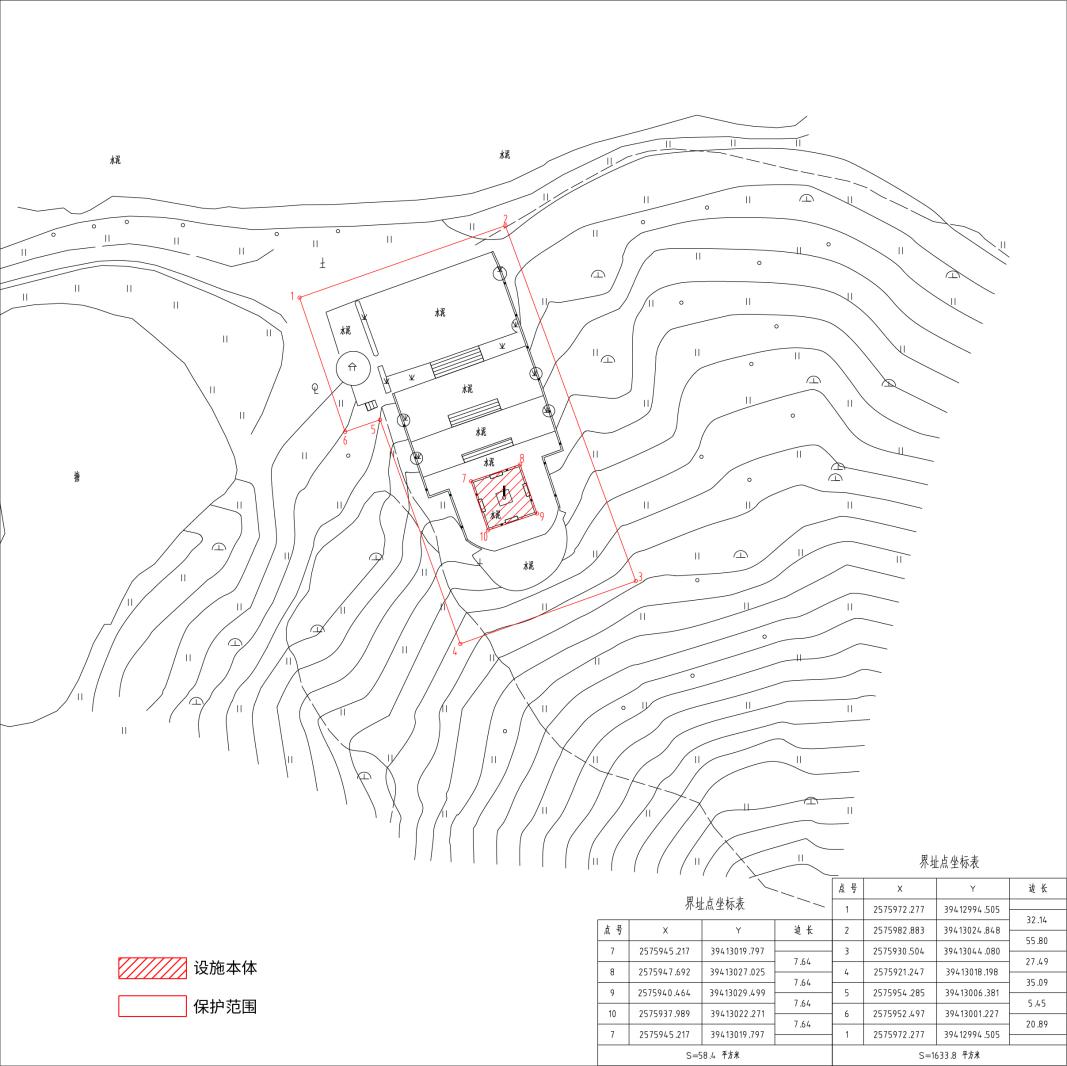 保护范围1633.8平方米。