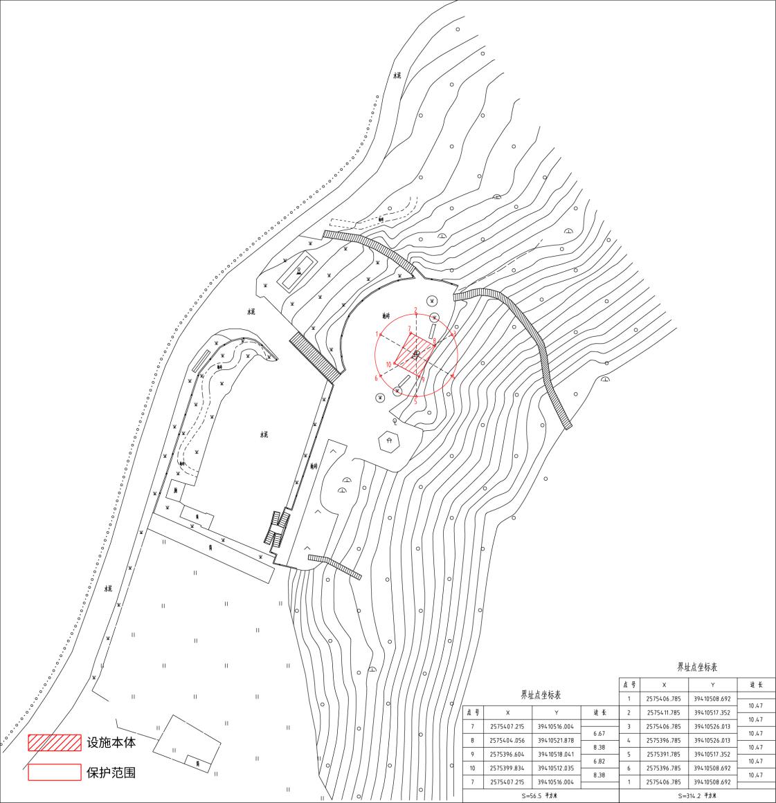 保护范围314.2平方米。