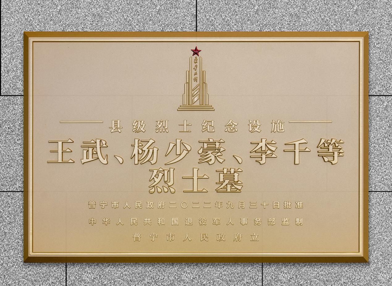 王武、杨少豪、李千等烈士墓牌匾