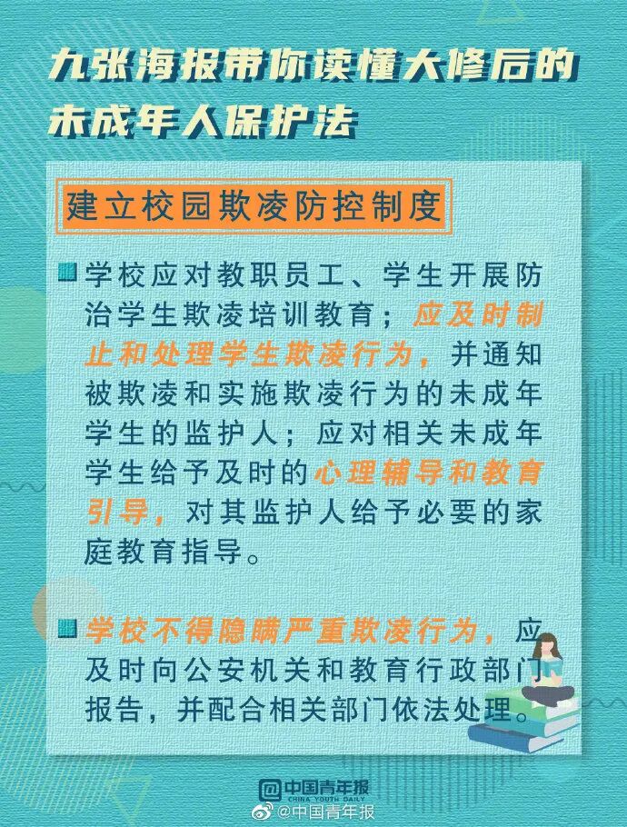 学生欺凌,是指发生在学生之间,一方蓄意或者恶意通过肢体、语言及网络等手段实施欺压、侮辱,造成另一方人身伤害、财产损失或者精神损害的行为。并明确规定了学校在学生欺凌及校园性侵的防控与处置机制。