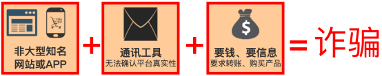 犯罪分子通过制作假冒的网站、APP的方式,虚构事实使受害人上当进行诈骗。 作案步骤: 1、犯罪分子搭建仿冒贷款网站、购物网站、理财平台或APP。 2、犯罪分子进一步通过搜索引擎、短信群发、论坛发帖、即时聊天工具聊天等方式推广。 3、受害人访问网站或下载安装APP后上当受骗。 常用套路: 1、网络赌博诈骗。犯罪分子通过开设赌博网站或APP,诱骗受害人向网站充值和赌博,在网站后台通过修改赔率、控制提现等方式,使受害人赌输或无法提现资金。 2、预交保证金诈骗。犯罪分子以无抵押、无担保、低利息为噱头,引诱被害人登录或下载虚假贷款网站或 APP后实施诈骗;或者在各种聊天群组、招聘网站中发布兼职信息,声称招募网络兼职刷单,以高额佣金为诱饵吸引当事人上钩;或者开设虚构的网络服务网站,诱骗受害人注册和充值成为VIP会员,以交纳手续费、保证金、会员费为由实施诈骗。 3、投资理财诈骗。犯罪分子通过搭建网站或APP,虚构网络投资理财产品,以“高额回报”“稳赚不赔”为诱饵吸引受害人投资,在第一次小额的返利往往会兑现,待当事人刷单金额较大时,就会以系统卡单、错误等理由不予退还本金。 识别公式: