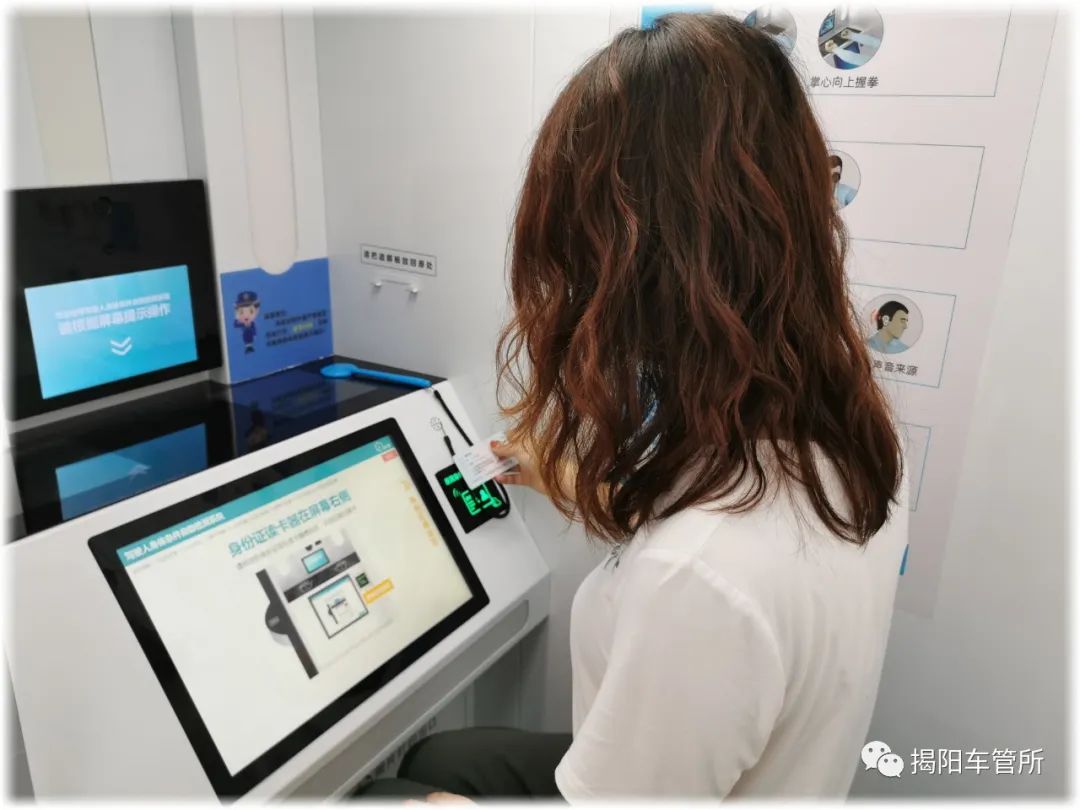 网点地址:普宁市普宁大道西池尾林青路段北侧。 工作时间:8:30-24:00 联系电话:0663-2913529 业务范围:驾驶人(初学、增驾、换证)体检、驾驶人自助照相、驾驶证期满换证。 网点地址:普宁市里湖镇里湖加油站西侧马路。 工作时间:早上9:00-12:00,下午14:00-17:00 联系电话:18688066996 业务范围:驾驶人(初学、增驾、换证)体检、驾驶人自助照相、驾驶证期满换证。 网点地址:普宁市梅林大道与梅葵路交叉路口。 工作时间:早上9:00-12:00,下午14:00-17:00 联系电话:0663-3877920 业务范围:驾驶人(初学、增驾、换证)体检、驾驶人自助照相、驾驶证期满换证。 网点地址:普宁市洪阳镇洪东路47号。 工作时间:9:00--17:30 联系电话:18688066639 业务范围:驾驶人(初学、增驾、换证)体检、驾驶人自助照相、驾驶证期满换证。 操作流程 01、刷身份证确认身份 进入体检机内部,将身份证放置于指定感应区进行扫描,系统自动读取体检人员的身份信息,可以进行证件照的拍摄。 02、完成体检项目 自助体检结束后,根据屏幕的提示,分别进行躯干、视力、辨色力、听力以及上下肢的检测,体检完成后,确认信息无误,即可点击提交,完成体检,体检数据将传送至医院,审核时间为周一到周日早上8:00至21:00,医生会远程对体检结果进行审核签名,现场审核时间约3-10分钟。 03、扫码后缴费