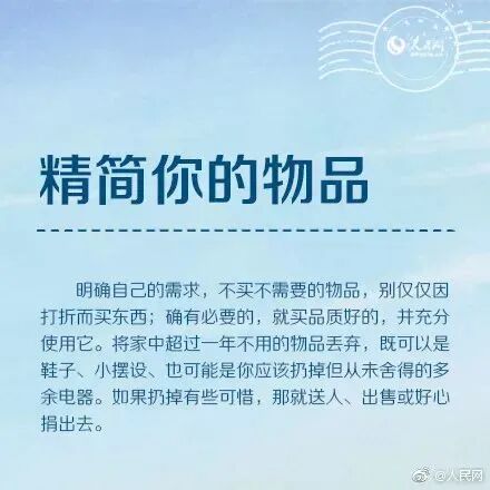 所谓极简并不是指吃饭只吃一个菜,舍不得花钱等,而是放弃无效的事情,最大限度利用自己的时间和精力,做一些有用的事,从而获得更大的快乐和幸福感。 01 欲望极简 了解自己的真实欲望,不受外在潮流的影响,不盲从,不跟风。 把自己的精力全部放在正确的、有效的欲望上,比如健康养生、照顾家庭、关心朋友、追求美食等。 02 精神极简 了解、选择、专注于1-3项自己真正想从事的精神活动,比如画画、书法、钓鱼、跳舞等。 然后充分学习、提高技能,不盲目浪费自己的时间与精力。 03 物质极简 将家中超过一年不用的物品丢弃、送人、出售或捐赠。比如看过的杂志、书,不再穿的衣服,早先收到的各种礼物或装饰品。 明确自己的欲望和需求,不买不需要的物品。 确有必要的物品,买最好的,充分使用它。 不囤东西,不用便宜货、次品。 用布袋,代替塑料袋和纸袋。 用一支好用的钢笔,替代堆积如山的中性笔。 用瓷杯、钢杯代替纸杯。 整合、精简电源线、充电设备。不重复购买电子产品。 精简出门行头,只带“身手钥纸钱”。 04 信息极简 精简信息输入源头,减少使用社交网络、即时通讯。少看微博、朋友圈。 定期远离互联网、远离手机,避免信息骚扰。 不关注与己无关的娱乐、社会新闻。 05 表达极简 写东西、说话,尽可能简单、直接、清楚。 特别是一些人容易唠叨、啰嗦,这时候更要减少自己的表达,不说废话,不该管的事不要管。 06 生活极简 慢生活。 不做无效社交。 锻炼。 穿着简洁、不花哨,但一定要干净、舒适。 少吃含有添加剂的食品。 喝白水和纯果汁,不喝添加了大量化学成分的碳酸饮料和果汁。 忙、慌、累…过去的日子,你总感觉疲惫? 千头万绪在手,却没有一件持之以恒? 或许,你被繁杂的琐事绑架了生活,不妨从物质到精神都做个减法。有时候,事情很简单,复杂的是你。