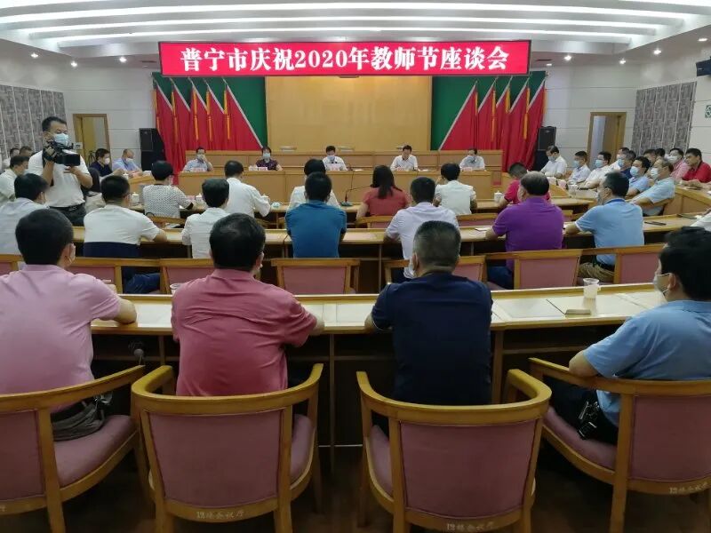 市领导符贤、黄锐亮、陈华娜、杨镇松、黄光胜,市委办、市政府办、市委编办、市财政局、市人社局负责同志,各乡镇场街道、普侨区党(工)委书记,市教育局班子成员,各教育组组长,市教育局直属学校校(园)长,2020年荣获潮汕星河辉勇师表奖教师、2020年普宁市“最美教师”等教师代表参加了座谈会。
