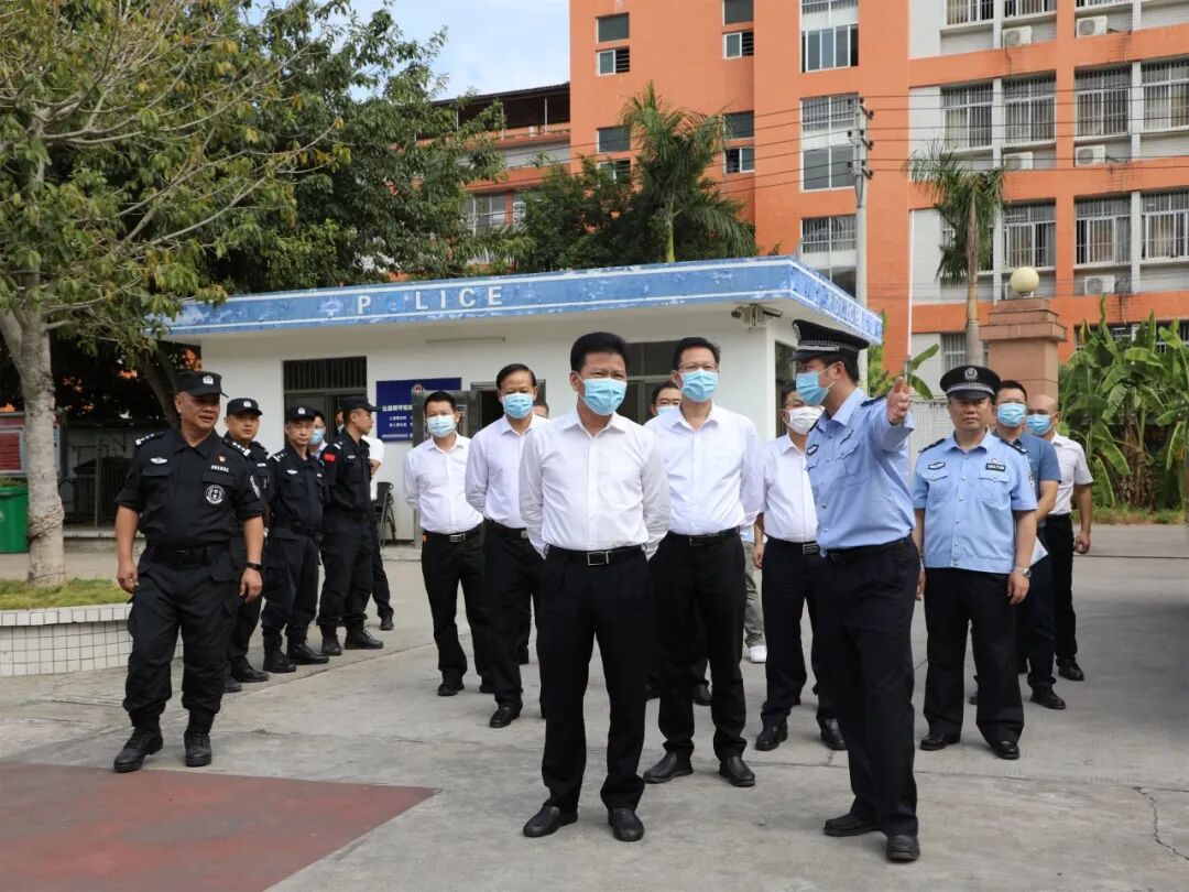 10月28日上午,市委书记符贤,市委副书记、市长黄锐亮带领市委副书记郑海忠,副市长、公安局长陈泓铎,市委办、市政府办及市有关部门主要负责同志到市公安局办证大厅、市公安局特警大队和城东派出所实地调研公安机关优化营商环境、应急处突力量建设和基层基础建设等情况并召开座谈会。 在市公安局办证大厅,符贤、黄锐亮详细了解出入境服务管理、签证办理等工作,要求市公安局办证大厅要进一步提升政治站位,增强服务意识,提升服务水平,以更高、更实、更新的标准和举措,推进全市公安机关优化营商环境工作再上新台阶、再创新业绩。在市公安局特警大队,符贤、黄锐亮等观看了特警队员防暴队形演练,了解特警训练、住宿条件,要求特警大队要继续抓好队伍管理,凭借过硬的队伍作风和精湛的警务技术,引领全市公安工作整体效能持续提升,共同捍卫全市政治安全、社会稳定、人民安宁。在城东派出所,符贤、黄锐亮等察看该所的办证大厅、民警办公、学习、住宿情况等,要求基层派出所要进一步强化为民服务意识,创新为民服务举措,用实实在在的行动诠释“人民公安为人民”的初心使命。 符贤在座谈会上讲话,充分肯定了今年以来市公安机关取得的成绩,同时指出存在的问题,并对下阶段全市公安工作提出要求:一是强化班子建设,提升队伍战斗力。要发挥“火车头”作用,切实加强班子建设,明确职责分工,提高班子凝聚力;要坚持严管和厚爱相统一,依法规范和保障民警各项待遇,加强对辅警的培训和训练,提高队伍战斗力。二是强化主责主业,有效提升破案率。治安先治警,治警必从严。全市公安机关要强化问题导向,开展社会治安专项整治行动,集中攻坚积案清理,形成震慑,发挥好“刀把子”作用,做平安普宁创建工作主力军,为推动普宁高质量发展保驾护航。三是强化信访维稳,切实维护社会稳定。要提升社会治安管控能力,真正把公安工作做到老百姓的心坎上,全力维护社会和谐稳定,进一步提升人民群众的安全感、获得感和幸福感。四是强化服务效能,优化营商环境。要进一步强化为民服务意识,创新为民服务举措,提高服务效能,优化营商环境。五是强化党风廉政建设,坚决守住底线。要坚持全面从严治警,把严的标准、严的要求、严的措施,落实到公安队伍建设和反腐倡廉工作各方面、全过程,着力打造一支信念坚定、执法为民、敢于担当、清正廉洁的公安队伍。 黄锐亮主持会议。要求全市公安机关要迅速贯彻落实符书记的讲话精神,坚持政治建警、从严治警、从优待警,做细做实各方面工作,在服务大局中履职尽责,在平安普宁建设中主动作为,在队伍自身建设中从严、从实,努力打造新时代“公安铁军”。 会上,陈泓铎汇报今年来全市公安工作情况;郑海忠就如何优化公安机关软、硬件环境和提高公安机关自身建设提出了意见建议。