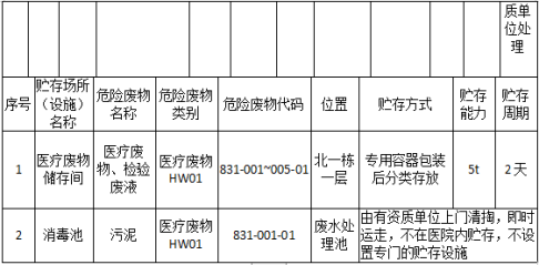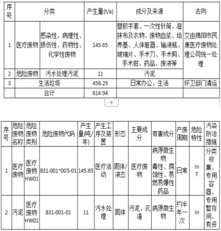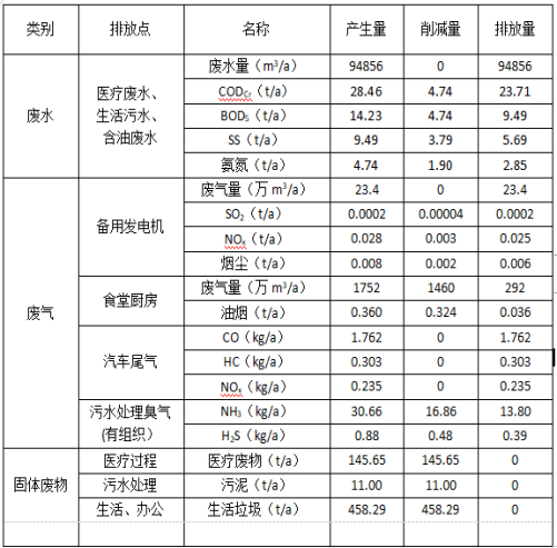 废水:采用污水处理站综合处理后达标排放,排放口数量为1个执行达到《医疗机构水污染物排放标准》(GB18466-2005)综合医疗机构水污染物排放限值预处理标准及广东省《水污染物排放限值》(DB44/26-2001)第二时段三级标准、