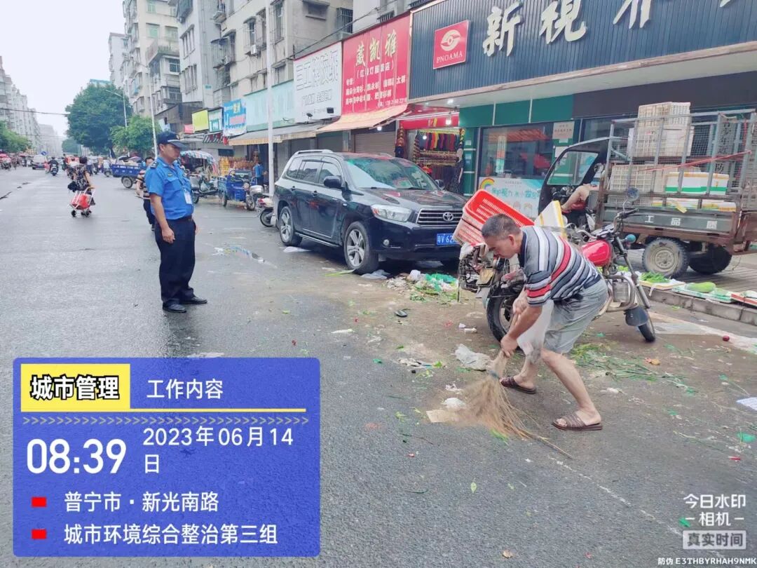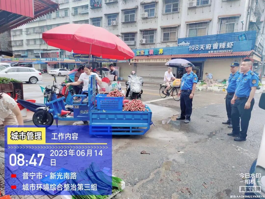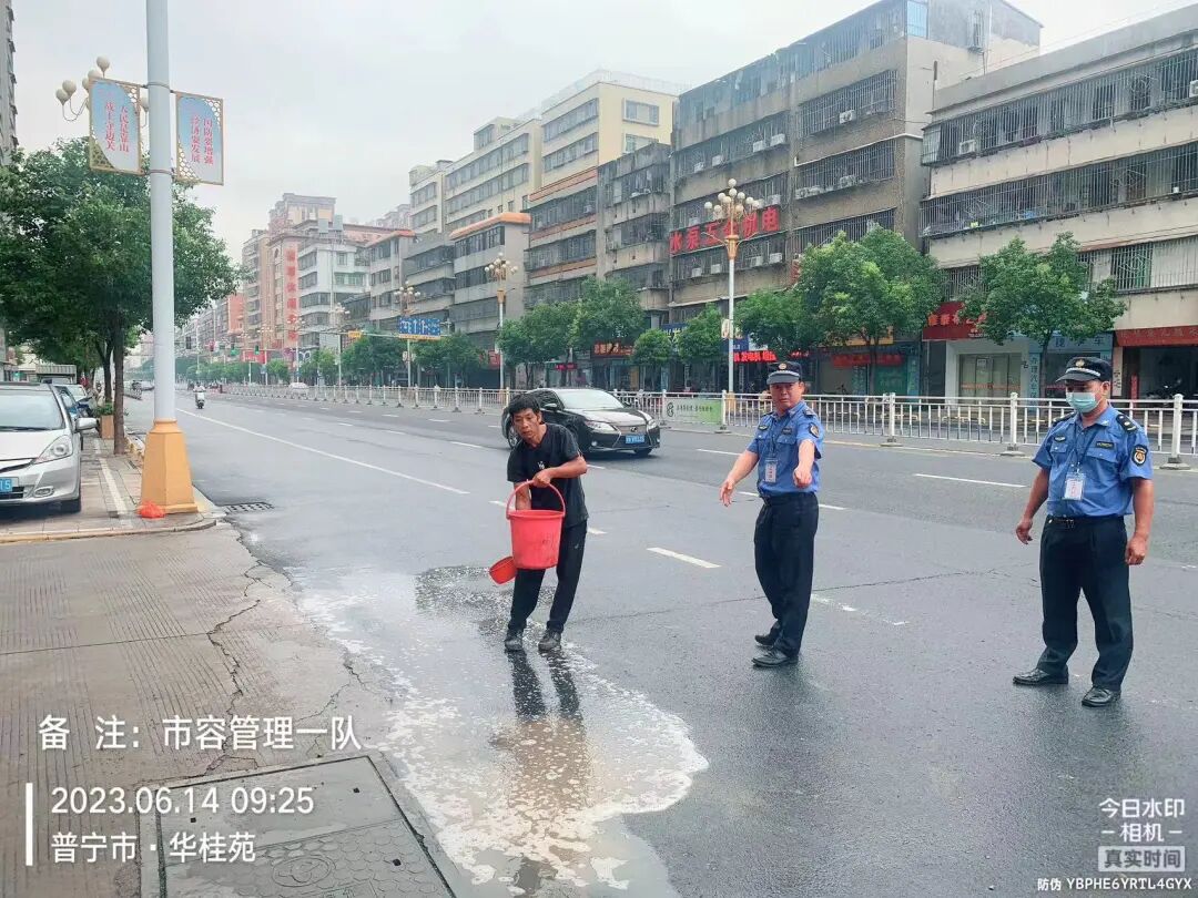 在市区各路段开展环境综合整治行动,整治占道经营、门前卫生脏乱、乱丢垃圾、乱摆设广告牌等违规行为,宣传推进落实门前三包责任管理: 继续加强对市区主干道沿街餐饮店餐厨垃圾处置、油污排放等情况的检查,对不符合有关规范、要求的,现场发放整改通知书,要求其限期落实整改: 巡查市区主要路段发现有车辆违停乱停,对车主进行教育并发放违停温馨提示书;对部分违停车辆依法进行锁车,现场开具处理通知书: 汛期加强市区道路巡查及应急抢险,在本次强降雨期间应急分队重点排查玉华路、三中桥头、环城南路等路段周边积水情况,并及时发动专业人员及机械至北环大道御景城二期开展应急抢险排水工作: 配合市场监督管理局处理市民投诉占道经营问题: 对市民投诉的城南鱼肉菜市场占道经营霸街为市问题,于6月13日晚至现场进行清理整治: 开展校园周边环境巡查整治,劝导督促校园周边占道经营商铺及流动摊贩进行整改,加强宣传教育,推进落实门前三包责任管理: 暴雨过后,市政管养站及时组织人员加强对新河西路、流沙大道、大德路排水不畅雨水井的清理疏通: ★ 整治小结 ★ 本周共开展日常巡查78次,出动人员433人次,整治占道经营186宗,清理流动摊贩190宗,清理乱摆设广告牌、横幅、牛皮癣34宗,拆除路障8宗、乱搭遮阳篷及遮阳伞48宗,落实商户做好门前卫生保洁106宗,劝导教育违停车辆34宗,整治处罚违停车辆4宗,清理私设停车位2宗、乱堆放杂物垃圾36宗,清理污染路面8宗,落实餐饮店餐厨四水排放整改6宗。路中隔离栏加固39米,修复防撞柱2支、雨水井4套、疏通雨水井230米。道路路灯维修4盏,路灯线路隐患排除8处;墙灯维修4盏;拆除隐患灯杆1杆,变压器台检修2处。修剪、清理倾斜大树和树木枯枝断枝43处,预先疏枝、修剪、加固树木147株,园林设施维护5处,公园清理管道去积水出动30人次,绿化修剪养护道路2条,绿化修剪养护公园广场2个,修剪养护绿化面积合计2万平方米。