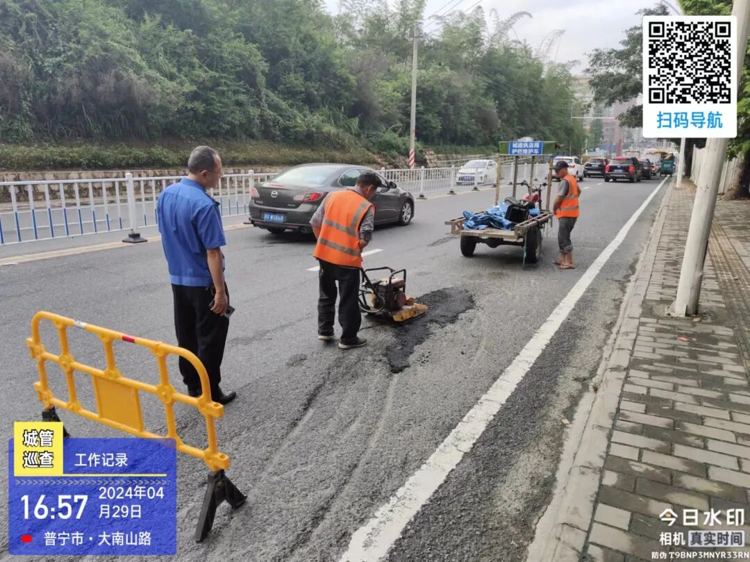 五一期间持续对市区主要路段开展综合整治行动,重点整治占道经营、乱摆设广告牌、门前卫生脏乱、乱堆放杂物垃圾、违搭遮阳伞、私设斜坡等违规行为,并加强“门前三包”宣传: 对市区主干道餐饮店开展餐厨督导检查,重点检查餐饮店油烟净化、油水分离设备安装及使用情况,要求其定期清洗厨房设备及清理油渣残渣,厨余垃圾、油水按规范处理后排入污水管网: 对市区各中小学开展校园周边区域集中专项整治工作,重点对校园周边商铺乱摆放广告牌进行整治、规范校外车辆有序停放,确保校园周边道路交通安全畅通: 巡查发现有车辆在人行道或人行道出入口违停,现场对违停车辆发放“温馨提示”,劝导车主依规有序停车: 对明华路、体育西路乱摆乱放、占道经营进行清理整治,劝导并督促违规摊贩撤离,并通知升阳升保洁公司人员清扫路面: 组织人员对市区河滨北路南平里段乱摆乱卖、占道经营进行清理整治: 巡查发现部分商铺装修占道乱堆放建筑垃圾,影响城市市容市貌,督促业主及时将垃圾清运干净,并做好门前卫生打扫: 巡查发现流沙大道西177号商户擅自修复排污管,责令其立即停工并对其发放整改通知书,督促其登记报备手续后再施工: 对新光路乱摆乱卖的摊贩进行清理整治: 汛期及时组织施工队伍对市区路段堵塞的雨水管道进行清理疏通: 巡查市区主要路段发现有沥青路面破损、部分设施损坏,及时组织施工队伍对其进行修复: 组织人员对市区各街道村居开展绿美和人居环境整治督导工作,发现问题及时反馈到各街道落实整改: ★ 整治小结 ★ 本周共开展日常巡查32次,出动人员116人次,整治占道经营35宗,清理流动摊贩55宗,清理乱摆设广告牌、横幅、牛皮癣21宗,清理乱搭遮阳篷、遮阳伞32宗,落实商户做好门前卫生保洁59宗,劝导车辆勿违停37宗,清理乱堆放杂物垃圾16宗,清理污染路面3宗,落实餐饮店餐厨四水排放整改2宗。修复路中隔离栏24米,防撞柱8支,机非隔离栏30米,阻挡杆6支,路牙石(绿岛石)52米,人行道路面(砖)115平方,反光立柱15支,沥青路面96平方;疏通雨水管道800米,雨水井盖14套;修复墙灯3盏,排除路灯线路故障14处,维修路灯70盏,流沙大道华灯更换灯泡207颗,更换灯罩4个。修剪清理倾斜大树和树木枯枝断枝8处;预先疏枝修剪、加固矫正树木2株;园林设施维护12处;公园清理管道去积水出动人员16人次;道路绿化养护合计约4.5万平方米;绿化垃圾外运六轮1车;绿化垃圾外运三轮16车次;各公园广场清理疏通排水道约120多米;劝导制止各种不文明行为40多次。 --END--