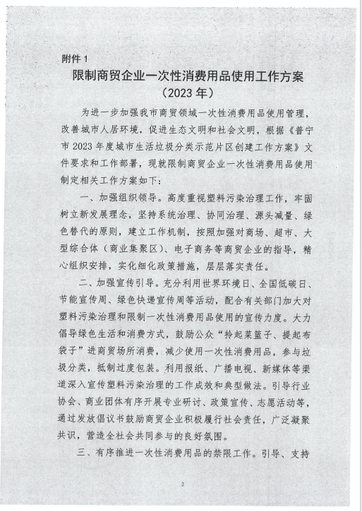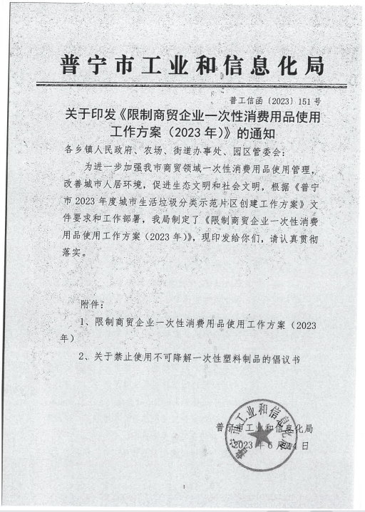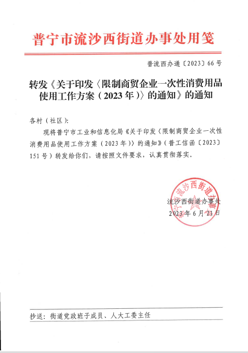 转发《关于印发〈限制商贸企业一次性消费用品使用工作方案(2023年)〉的通知》的通知