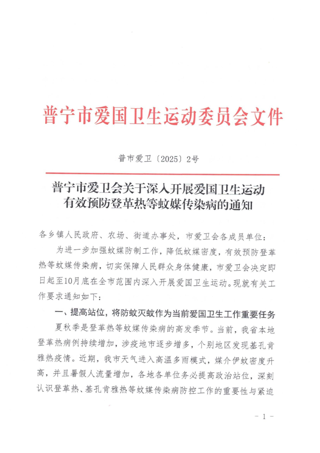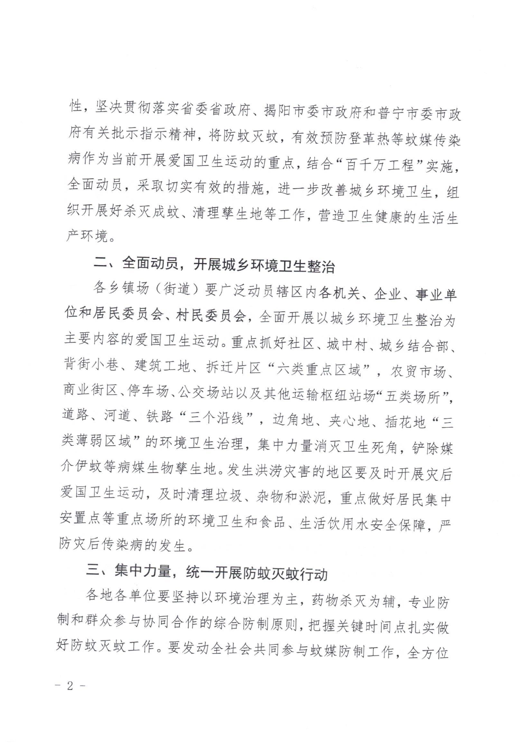 普宁市爱卫会关于深入开展爱国卫生运动有效预防登革热等蚊媒传染病的通知
