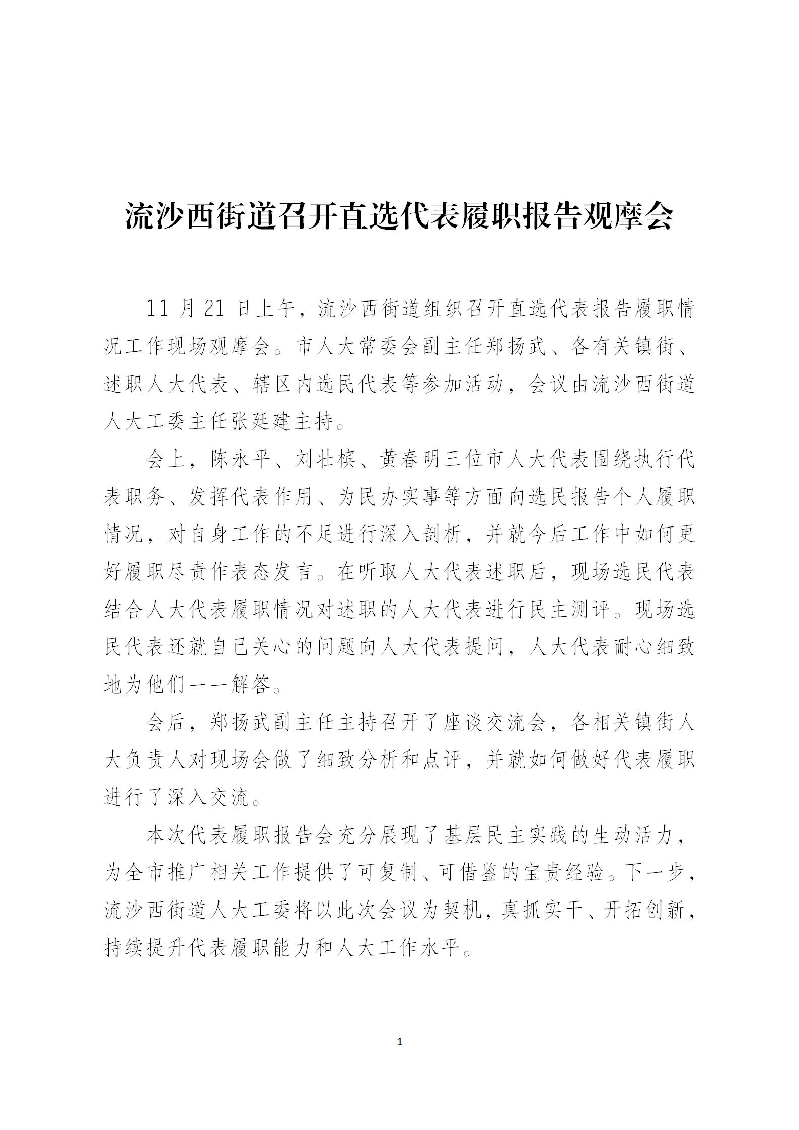 流沙西街道召开直选代表履职报告观摩会
