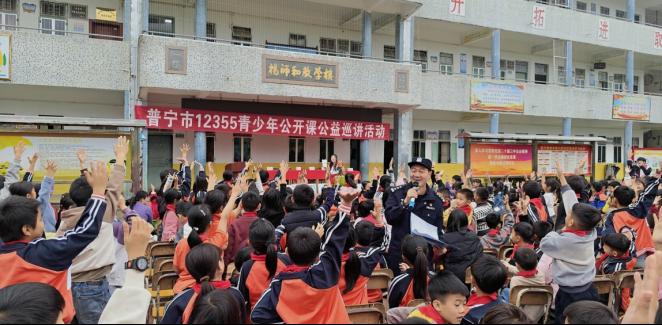 为深入贯彻习近平总书记关于未成年人保护工作的重要指示精神,切实服务青少年心理健康成长,2025年12月19日上午,由团市委、市12355青少年服务中心联合梅林镇主办的“普宁市12355青少年成长公开课”公益巡讲活动在梅林镇南阳小学顺利举行。本次活动以“认识自我,悦纳自我——在成长中与情绪温柔相处”为主题,面向全校约340名师生开展了一场生动而深刻的心理健康辅导课。