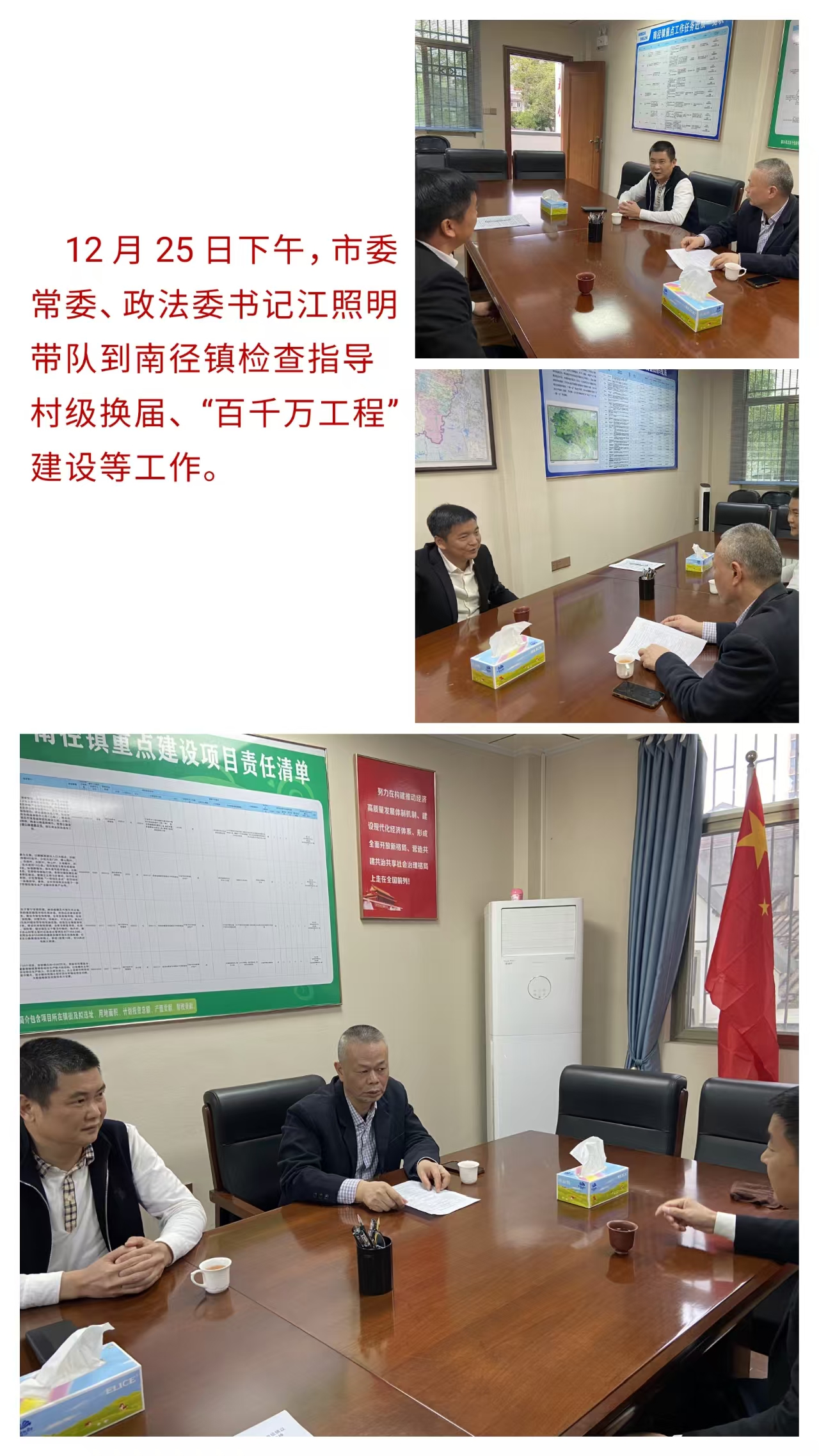 12月25日下午 市委常委、政法委书记江照明带队到南径镇检查指导村级换届、“百千万工程”建设等工作