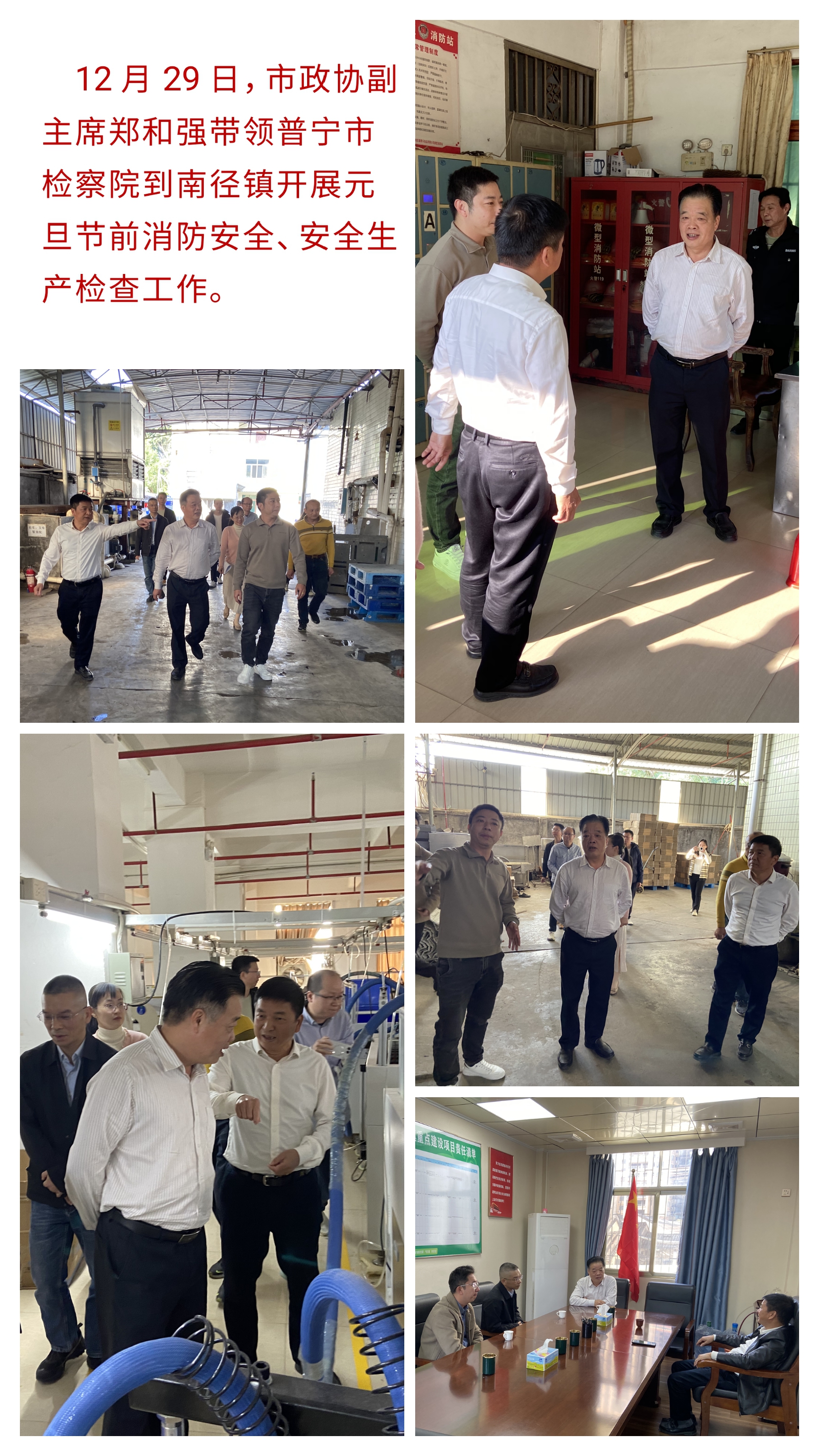12月29日 市政协副主席郑和强带领普宁市检察院到南径镇开展元旦节前消防安全、安全生产检查工作