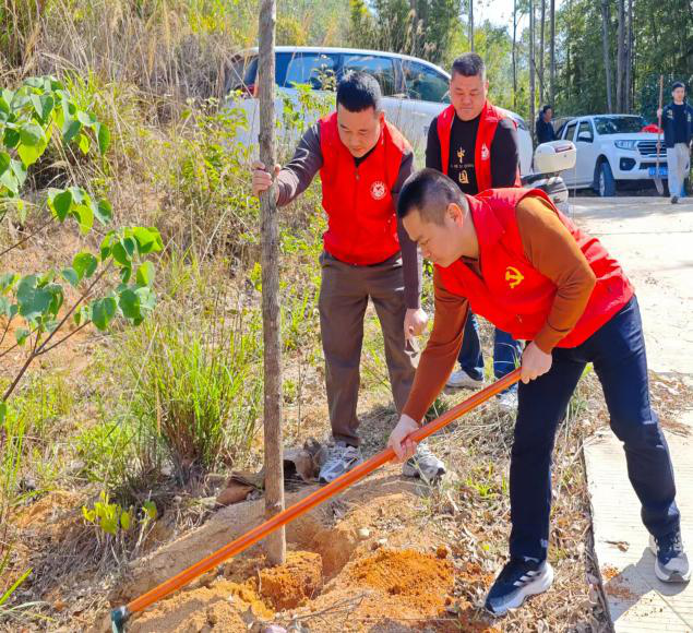 活动现场,党员干部们热情高涨、干劲十足。大家分工明确、协作默契,严格按照技术规范,认真完成挖坑培土、扶正树苗、夯实土层等每一个环节,力求让每一棵树苗都能茁壮成长。