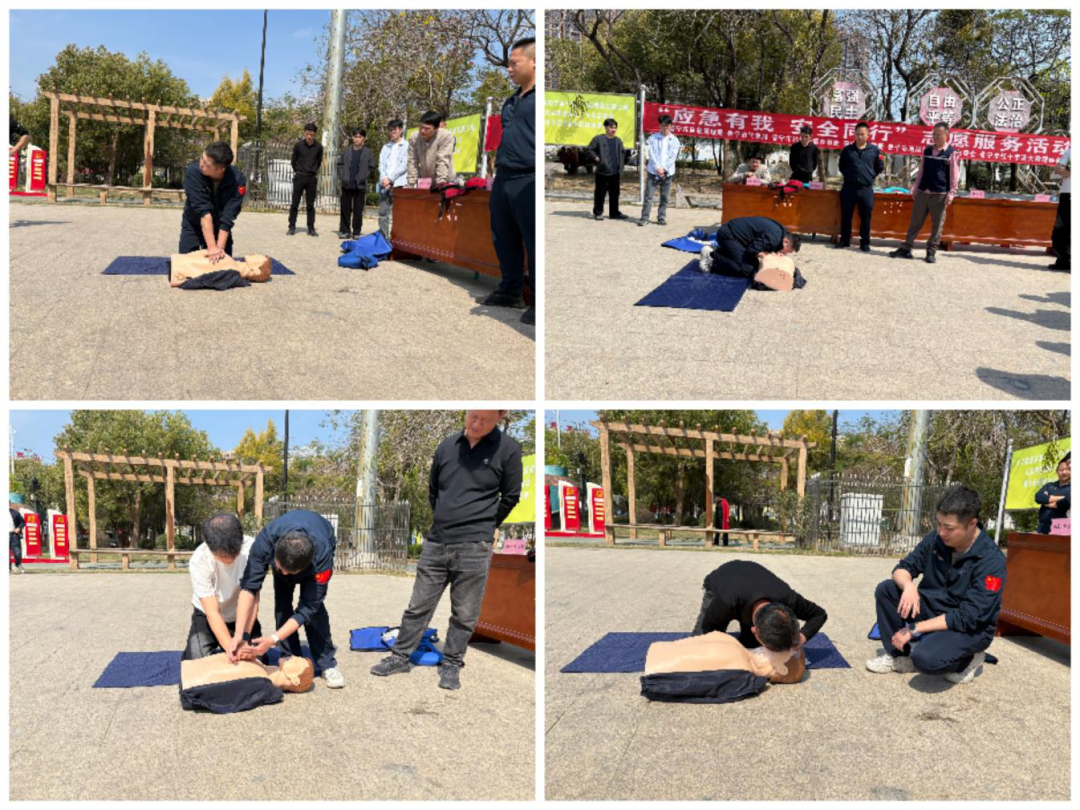 市红十字会蓝天救援协会专业讲师通过现场演示、互动体验等方式,现场实操讲解心肺复苏术、海姆立克急救法等基本急救知识和技能。