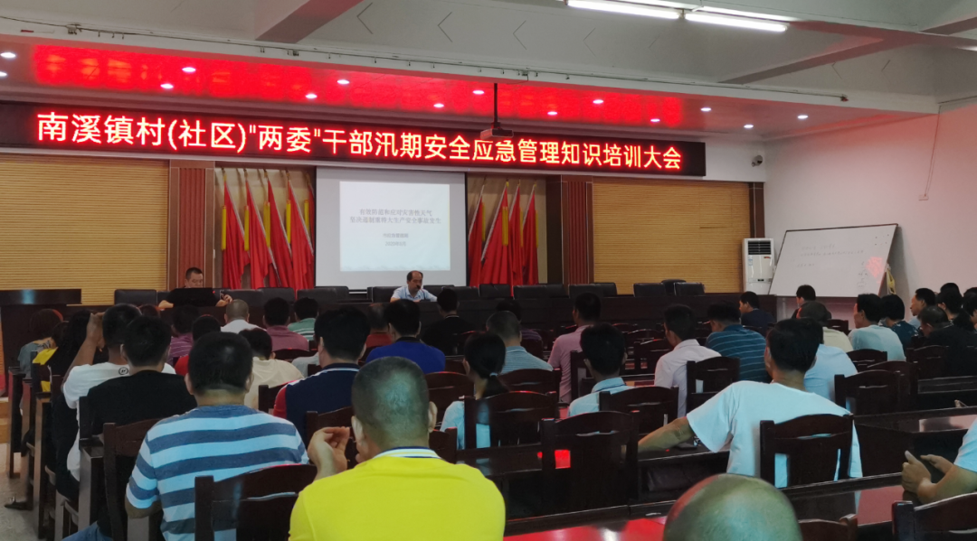 为切实提高农村基层干部汛期安全生产意识、管理素质和应急救援能力,推动责任落实,做好汛期安全防范和应急处置,根据《普宁市安全生产委员会办公室 关于组织开展全市村(社区)干部汛期安全应急管理知识培训的通知》(普安委办〔2020〕46号)文件精神,8月20日上午,南溪镇组织村(社区)“两委”干部共154人开展汛期安全应急管理知识培训,邀请市应急管理局宣教中心陈俊杰同志授课,方展洪副镇长主持培训活动。