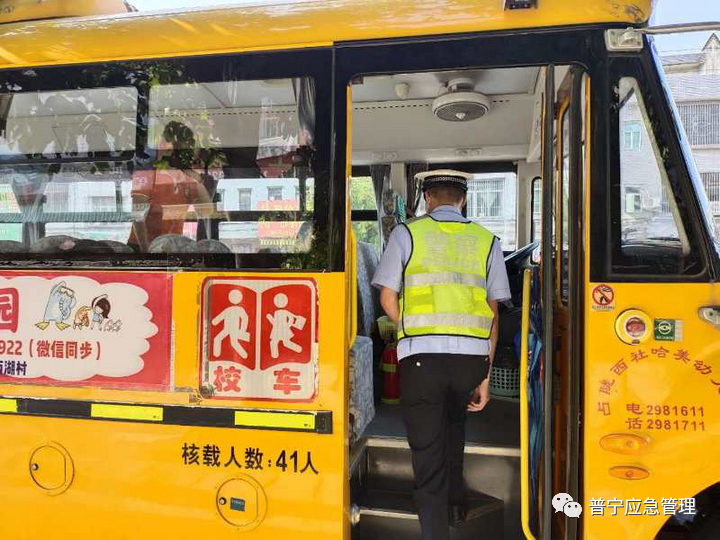 会后,安委办、派出所、交警中队、交管所等有关部门工作同志组成检查组,对校车车况、安全运行及疫情防控保障措施进行安全检查。