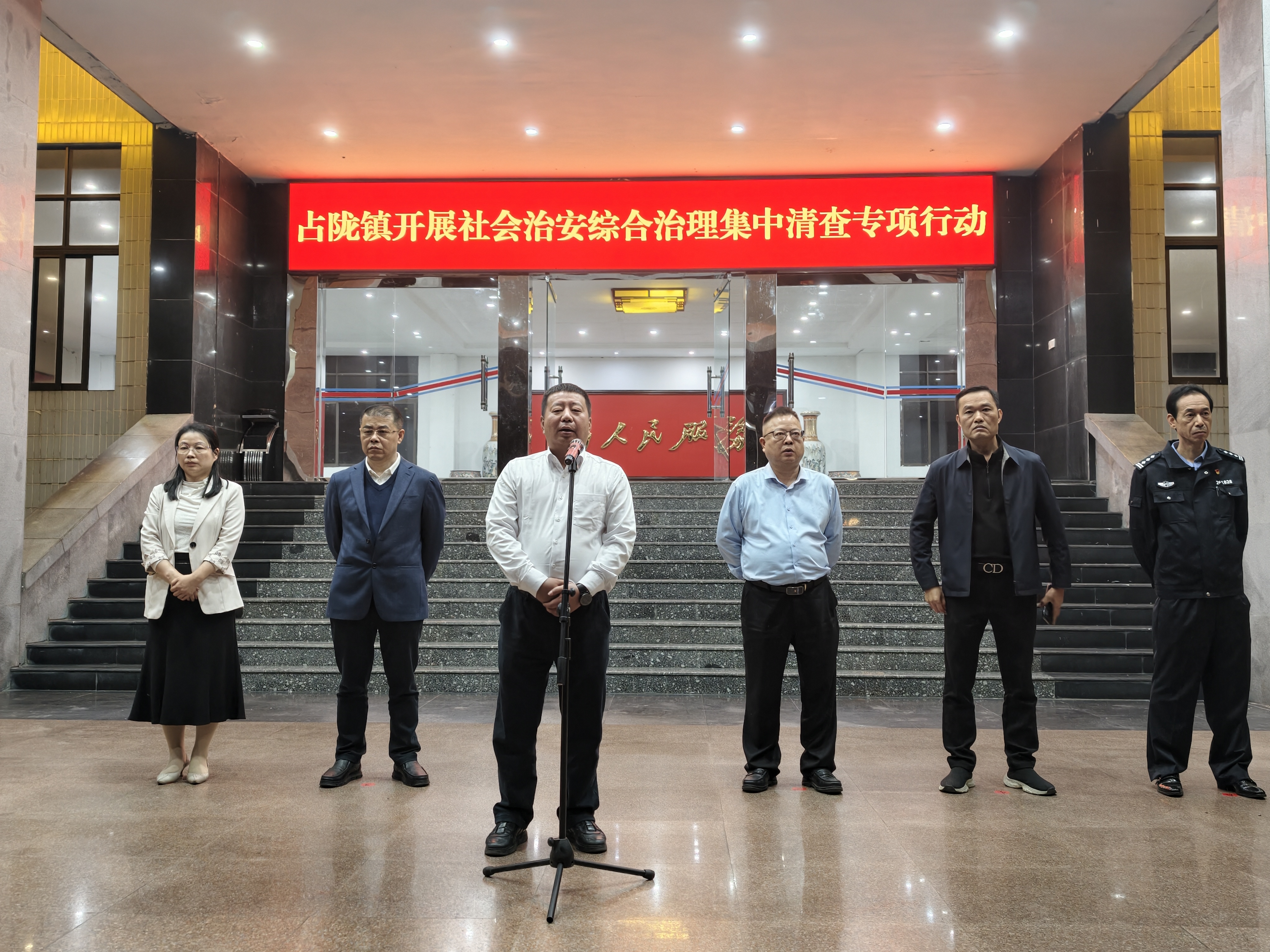 行动前,镇委书记章炎雄作动员讲话,强调各村(社区)党组织新班子要有新作风、新作为,紧紧围绕市委、市政府以"六项建设"推进"三城融合"的决策部署,以"时时放心不下"的责任感绷紧安全之弦,持续推进风险隐患排查化解,以高水平治理营造平安稳定的社会环境,护航占陇高质量发展行稳致远。本次行动设6个清查小组、1个设卡盘查组和1个后勤保障组,重点针对消防安全和安全生产、涉毒、涉假、涉赌、道路交通安全等问题开展地毯式大排查。行动开始后,全体行动人员迅速出发,奔向全镇各重点区域、重点场所,开展社会治安综合治理集中清查行动。