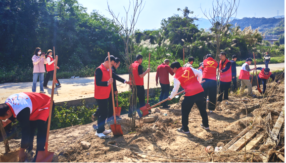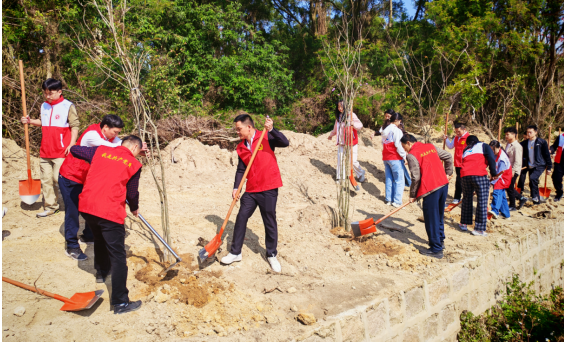 活动倡导党员干部踊跃捐款,以“十圆善款”认捐一棵苗,积极响应我市“全民参与,十圆十美”绿美普宁建设倡议活动,身体力行做绿美普宁建设的支持者、参与者。同时,组织党员到下架山镇咸寮村义务植树,现场热火朝天,大家干劲十足,挥锹挖坑、扶苗正干、培土压实,合力种下一排排风铃木树苗,为道路两旁增添一抹新绿,营造植绿、护绿、爱绿的良好氛围。