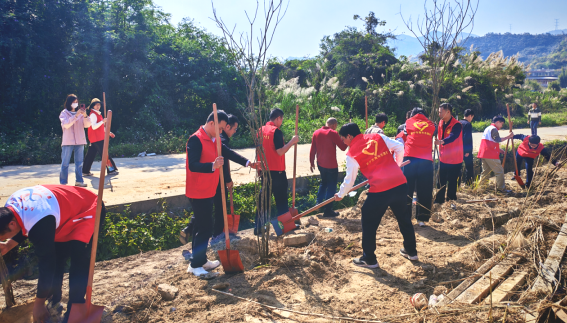 活动倡导党员干部踊跃捐款,以“十圆善款”认捐一棵苗,积极响应我市“全民参与,十圆十美”绿美普宁建设倡议活动,身体力行做绿美普宁建设的支持者、参与者。同时,组织党员到下架山镇咸寮村义务植树,现场热火朝天,大家干劲十足,挥锹挖坑、扶苗正干、培土压实,合力种下一排排风铃木树苗,为道路两旁增添一抹新绿,营造植绿、护绿、爱绿的良好氛围。