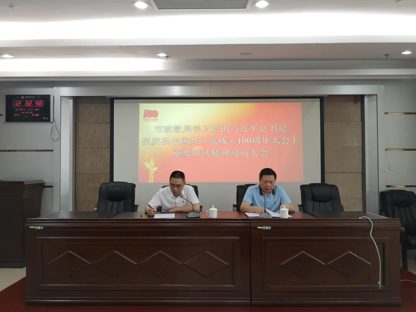 2021年7月14日,市政数局召开全体干部职工会议,传达学习贯彻习近平总书记在庆祝中国共产党成立100周年大会上重要讲话精神,动员全体干部职工进一步统一思想,振奋精神,凝心聚力,担当作为,服务我市经济高质量发展。