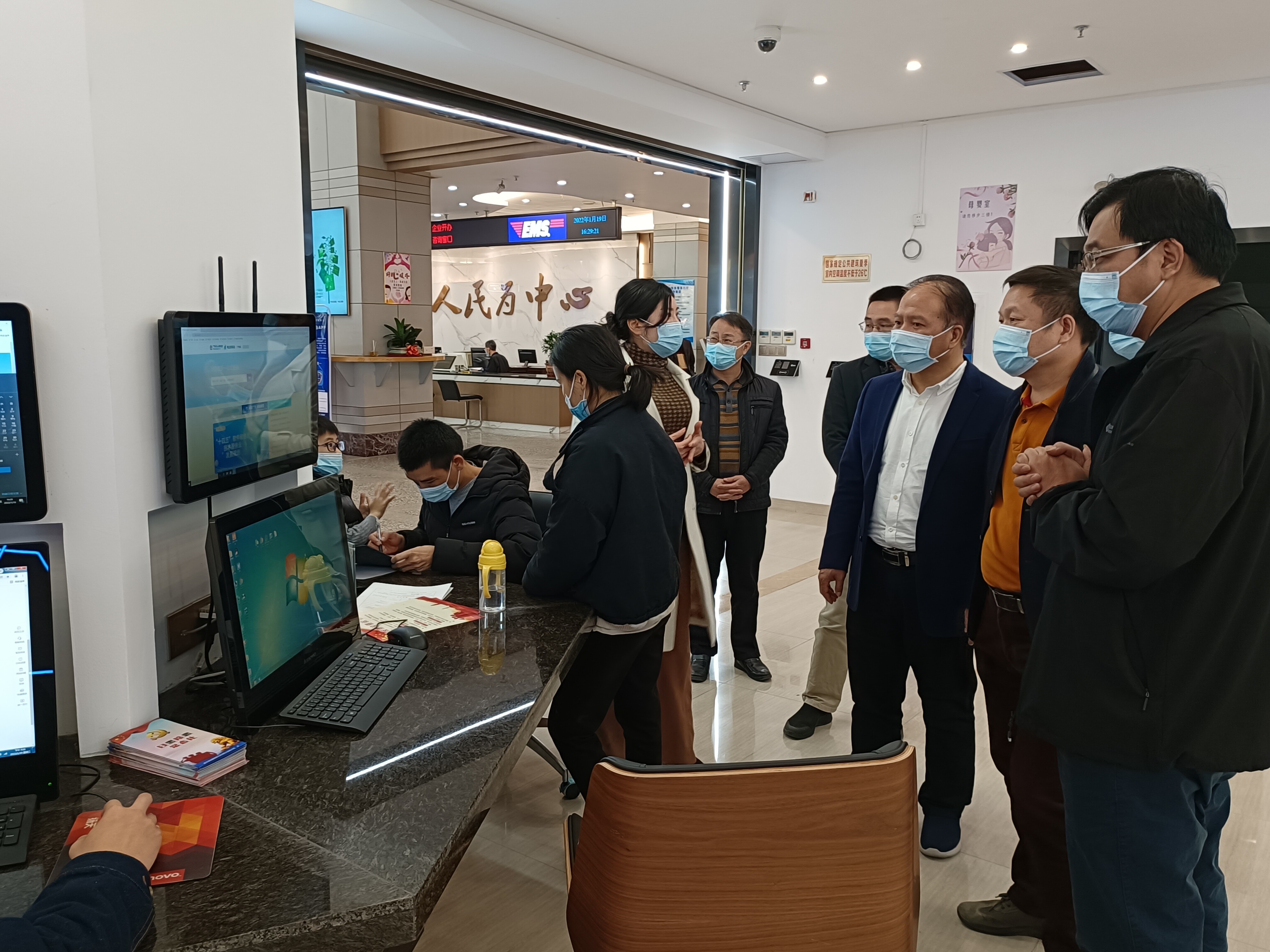 林建文一行实地察看市政务服务大厅办事窗口、智慧政务大厅、大数据展示区和12345市民热线办公室,通过与窗口工作人员及办事群众亲切交流,详细了解窗口业务、大厅运行情况和群众办事感受,并对窗口服务和12345市民热线工作提出指导性意见。