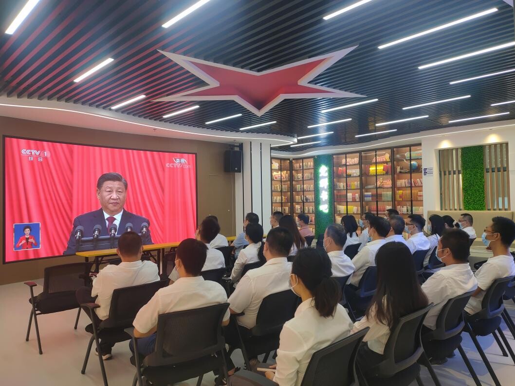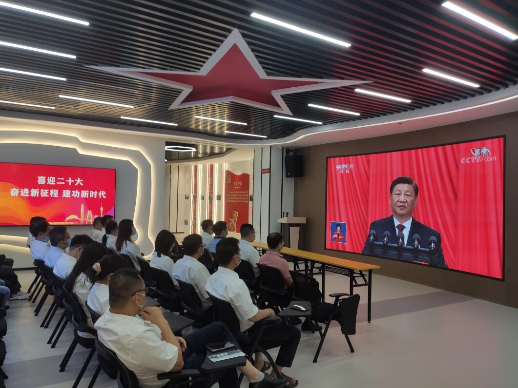 普宁市政务服务数据管理局组织全体干部职工在普宁市党群服务中心集中收看收听党的二十大开幕会