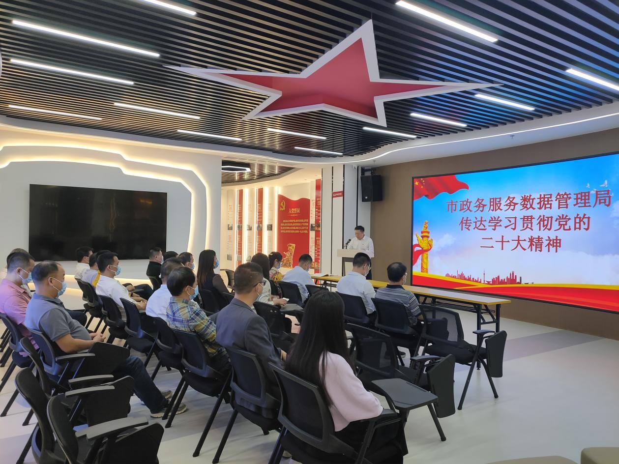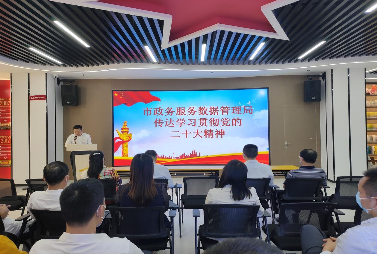 10月26日,市政务服务数据管理局传达学习贯彻党的二十大精神,动员全体干部职工高举习近平新时代中国特色社会主义思想伟大旗帜,切实把思想和行动统一到党的二十大决策部署上来,努力在新时代新征程上展现新气象新作为。