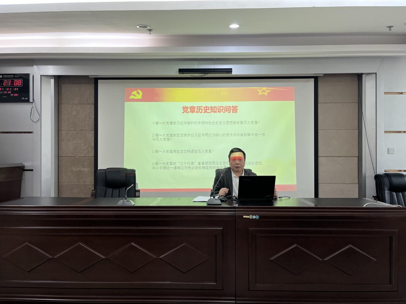 会上,支部书记陈俊通同志为全体党员干部职工讲授党课《学习新党章践行新思想》,党课重点围绕“为什么要修改党章”“党章历次制定及修正概览”“党章修改的主要内容”“新修改党章的特点”“怎么学习贯彻新党章”进行解读,教育引导全体党员职工要自觉学习党章、遵守党章、贯彻党章、维护党章,进一步凝聚党心民心、在全面建设社会主义现代化国家的新征程上夺取新胜利。